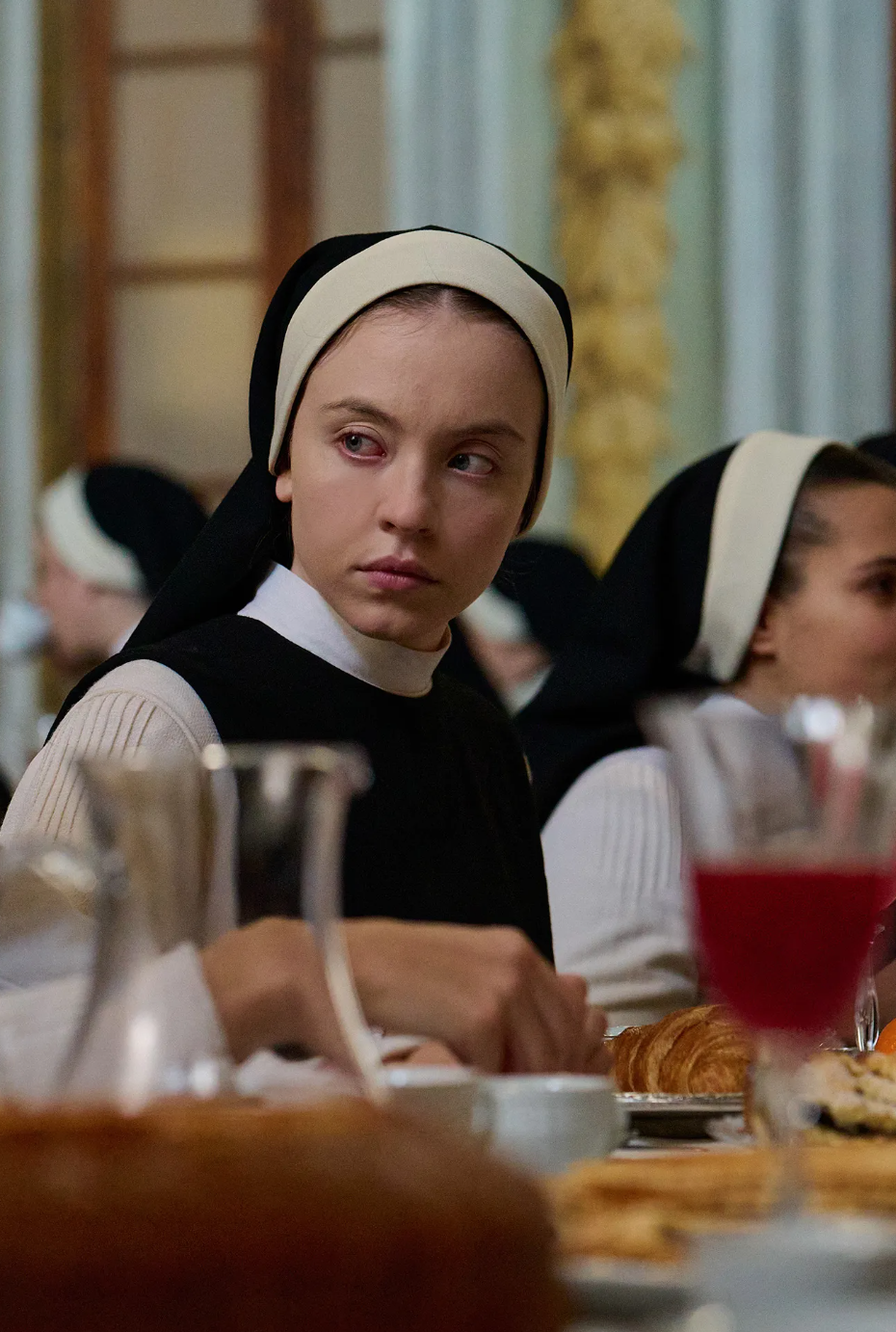Sweeney se luce interpretando a Cecilia, una novicia que descubre que su entorno aparentemente piadoso encubre prácticas inquietantes. Su transformación de ingenuidad a determinación es convincente y profunda.