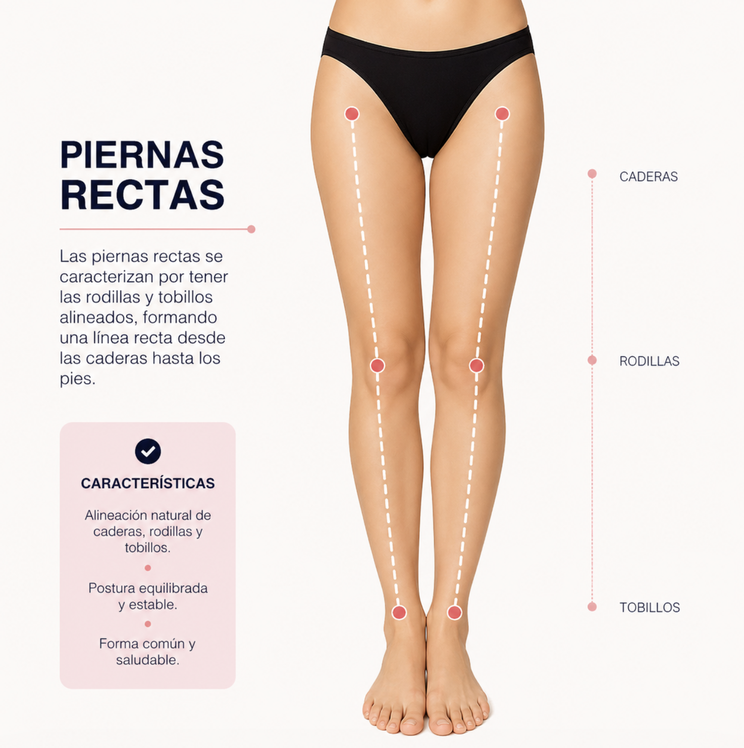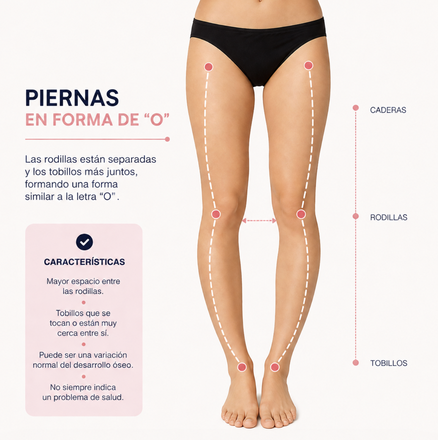 La forma de las piernas varía naturalmente entre personas y, en la mayoría de los casos, es completamente normal. Estas son algunas de las alineaciones más comunes: