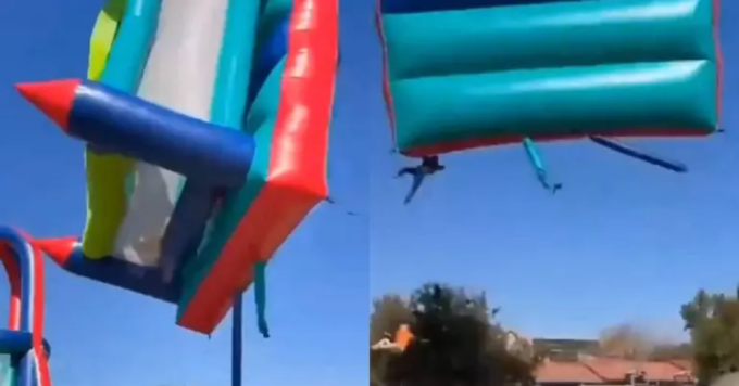 Un evento familiar al aire libre en Sudáfrica tomó un giro inesperado cuando un castillo inflable fue levantado por una ráfaga de viento...